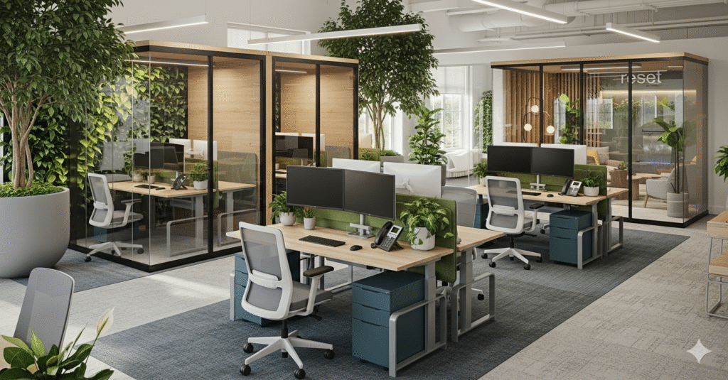 TerraBondSustainable bamboo • Biophilic integration • VOC-free finishesWellness-focused companies₹24,800/workspace